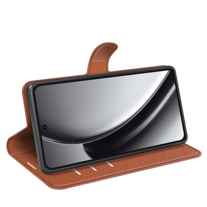 For Realme GT 6 5G Litchi Texture Horizontal Flip Leather Phone Case with Holder(Brown)