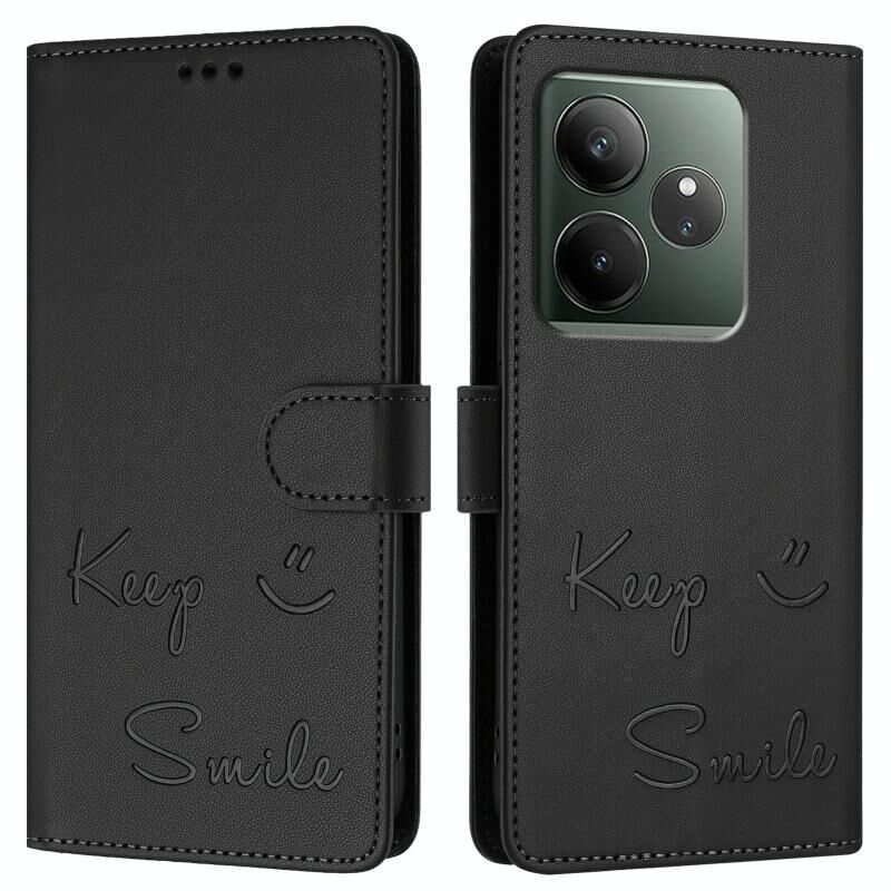 Για Realme GT 6 / 6T 5G Παγκόσμια χαμόγελο ανάγλυφο RFID δερμάτινη θήκη τηλεφώνου (Μαύρο)