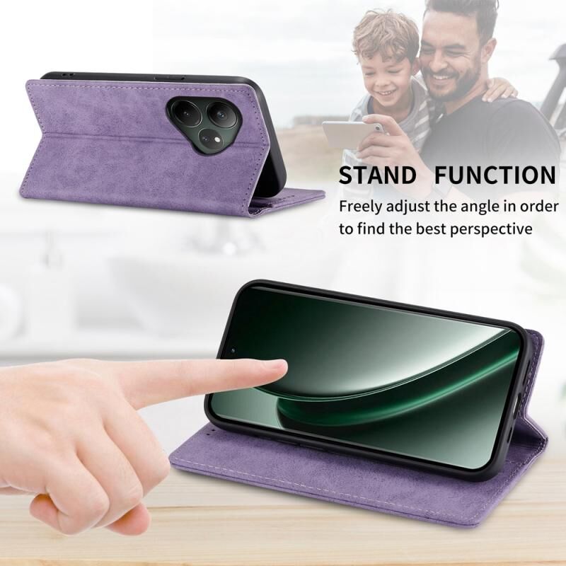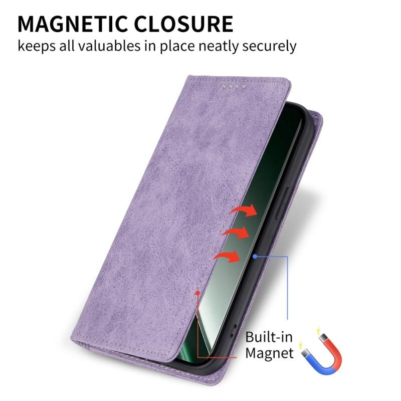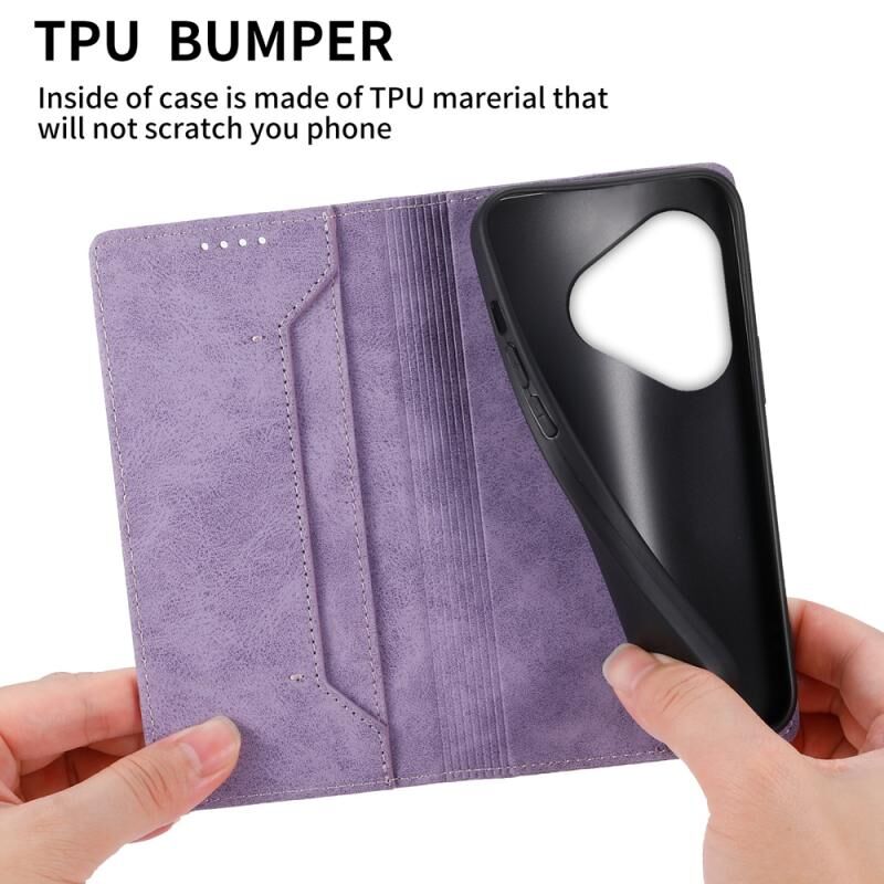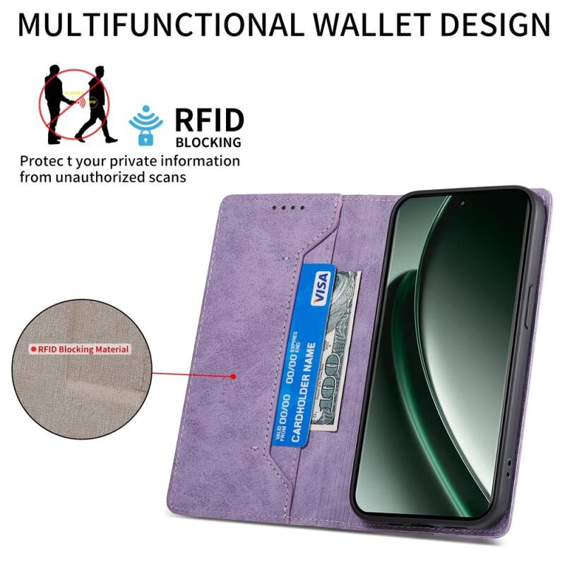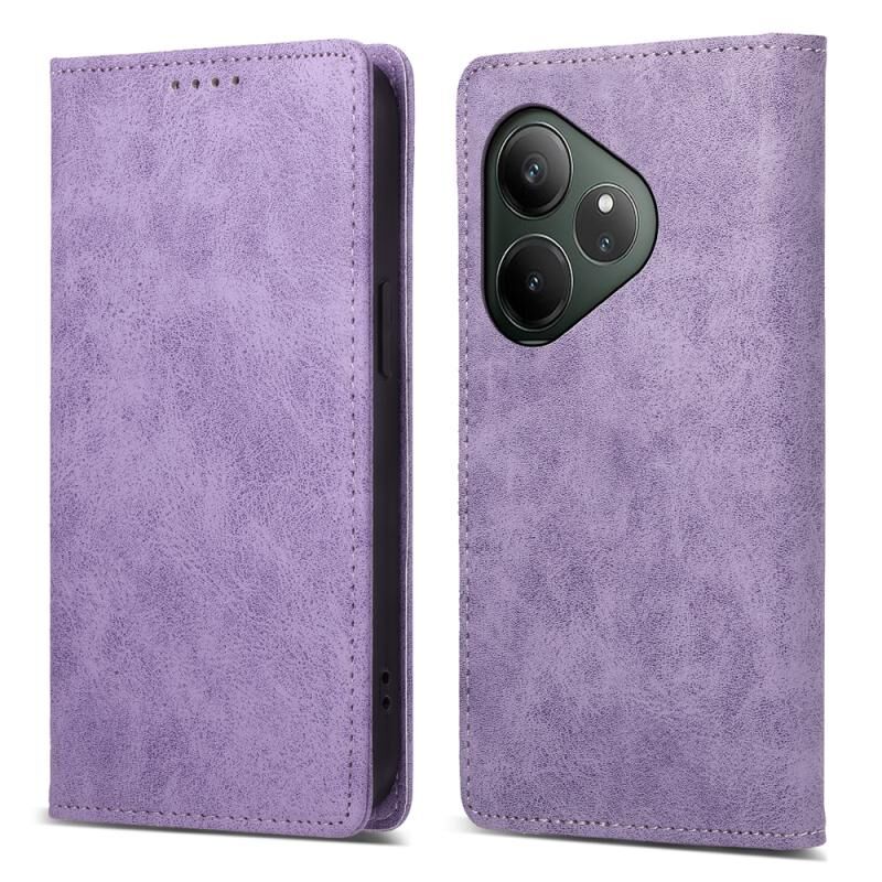 For Realme GT 6 Global Business Solid Color Magnetic RFID Leather Phone Case(Purple)