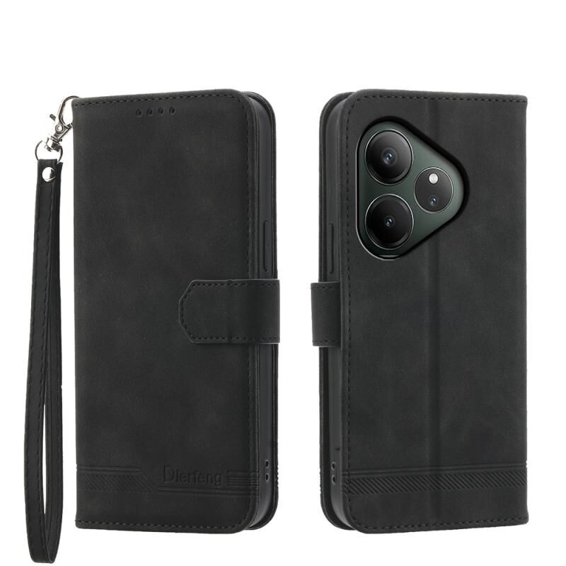 For Realme GT 6 Global Dierfeng Dream Line TPU Hybrid PU Leather Phone Case(Black)