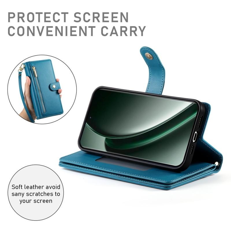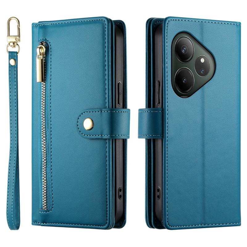 For Realme GT 6 Global Nine Card-slot Zipper Wallet Bag Leather Phone Case(Blue)