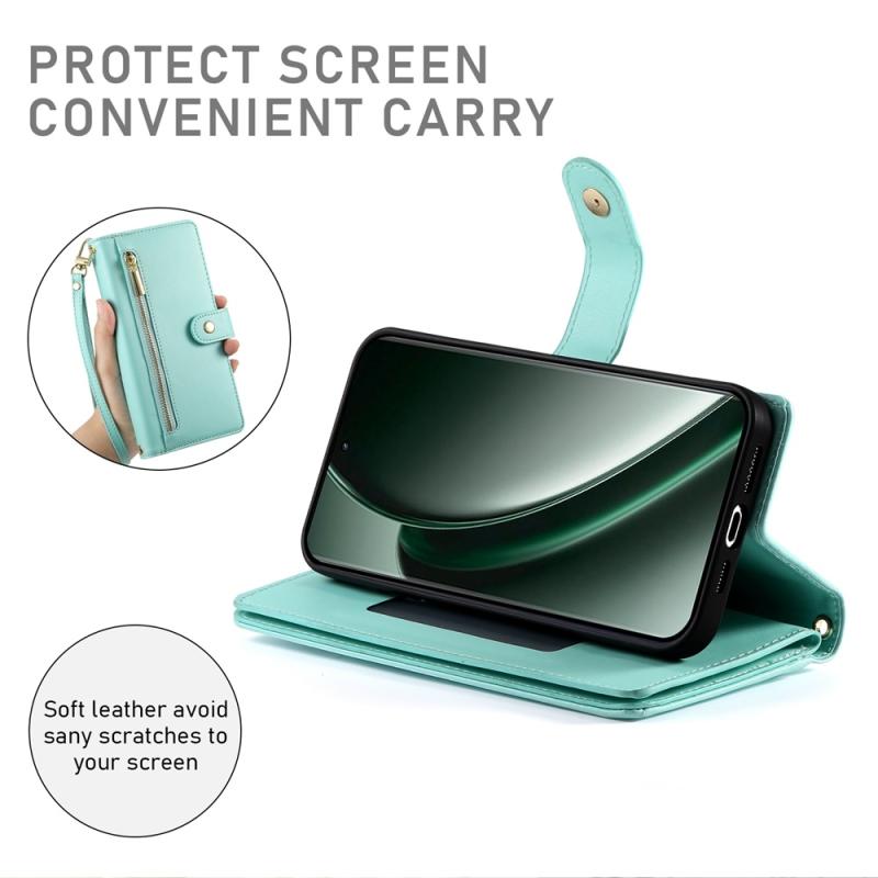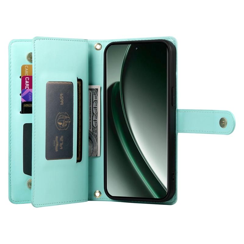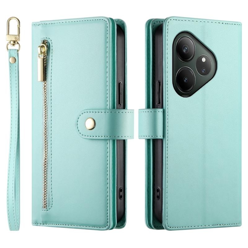 For Realme GT 6 Global Nine Card-slot Zipper Wallet Bag Leather Phone Case(Mint Green)