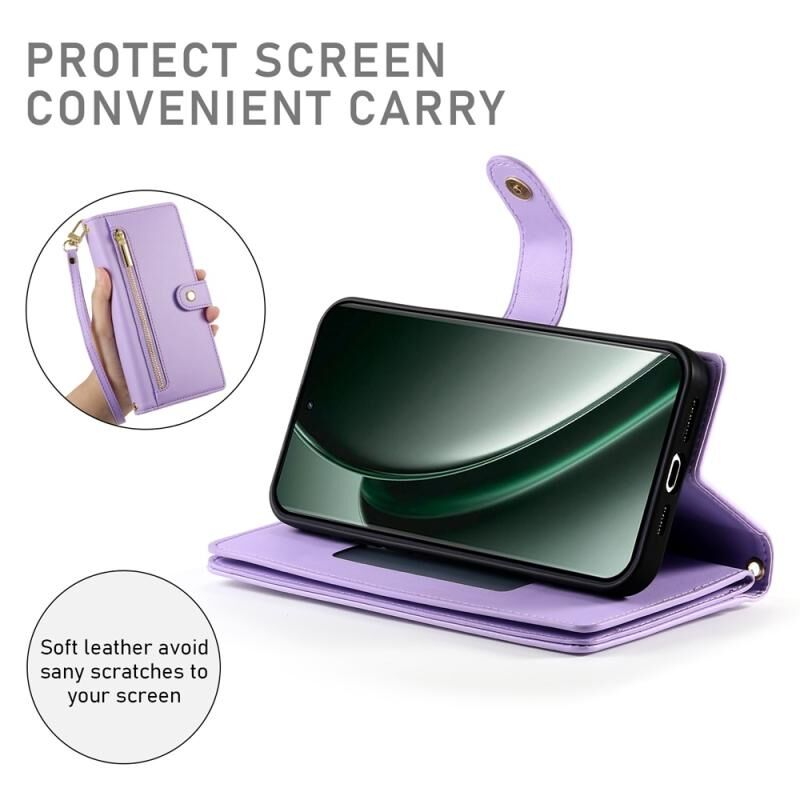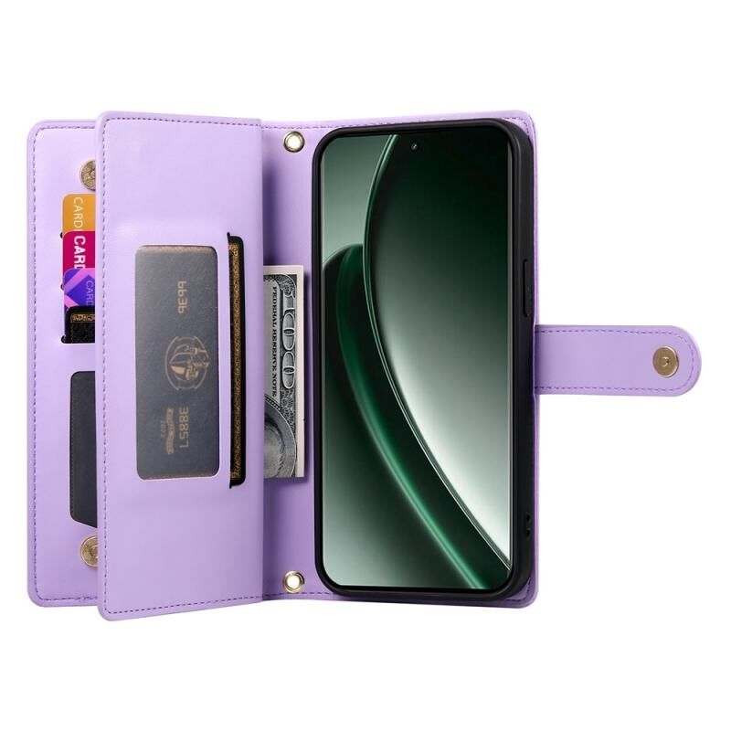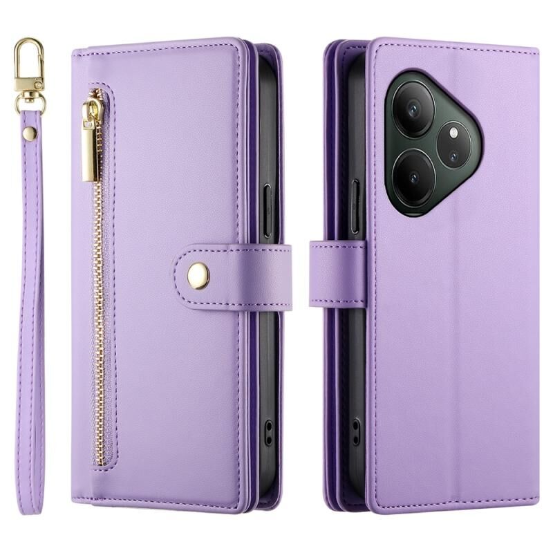For Realme GT 6 Global Nine Card-slot Zipper Wallet Bag Leather Phone Case(Purple)