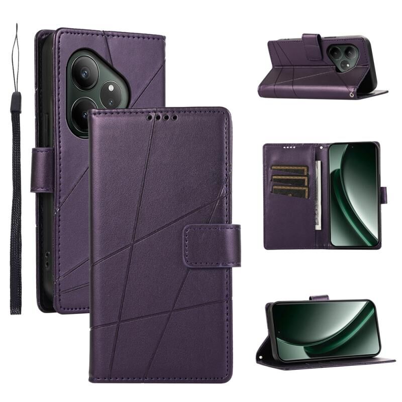 For Realme GT 6 Global PU Genuine Leather Texture Embossed Line Phone Case(Purple)