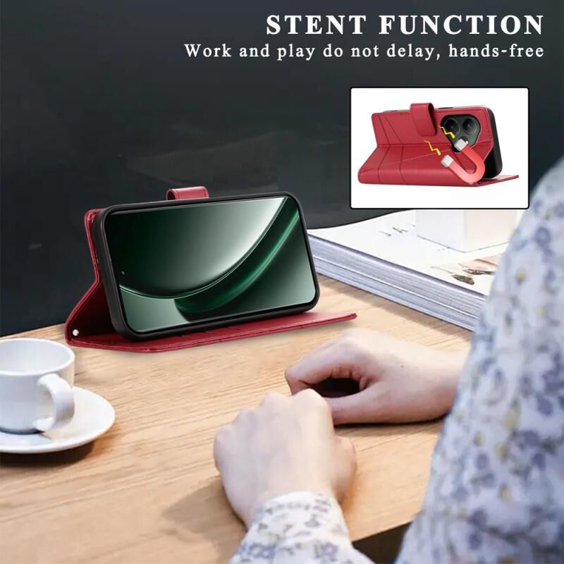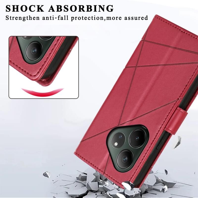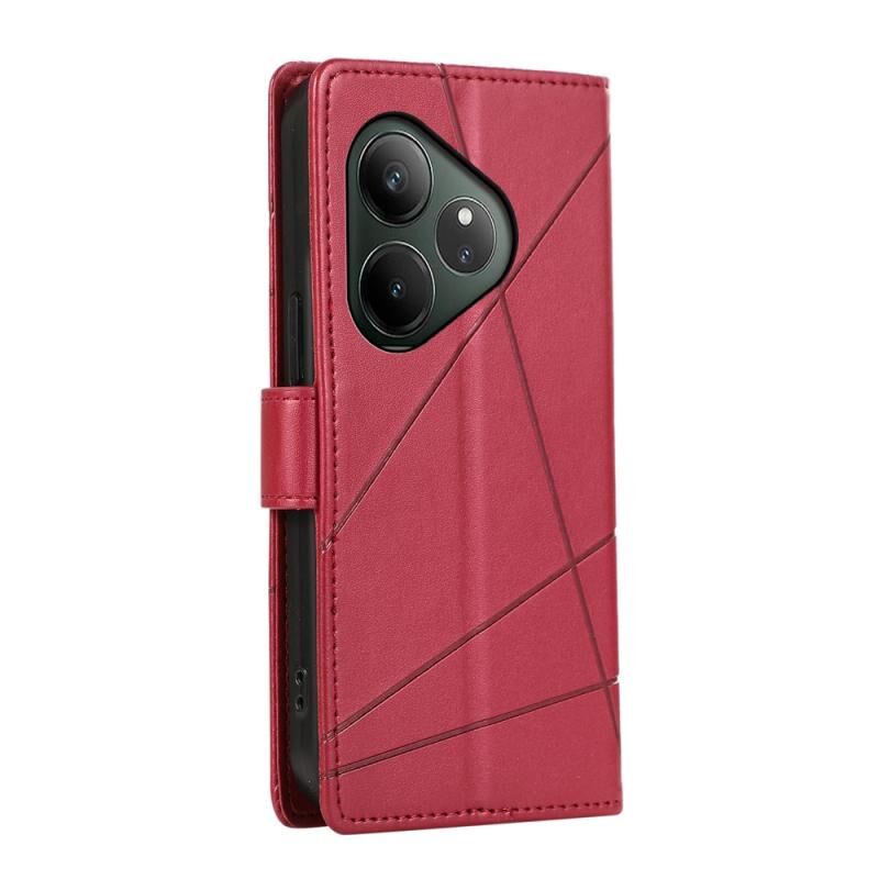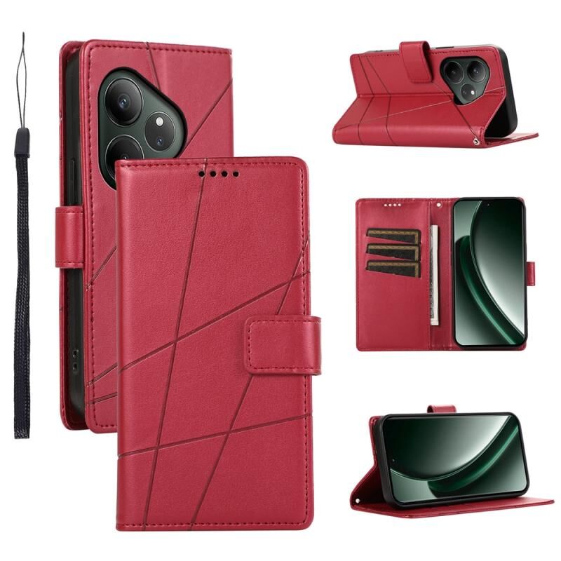 For Realme GT 6 Global PU Genuine Leather Texture Embossed Line Phone Case(Red)