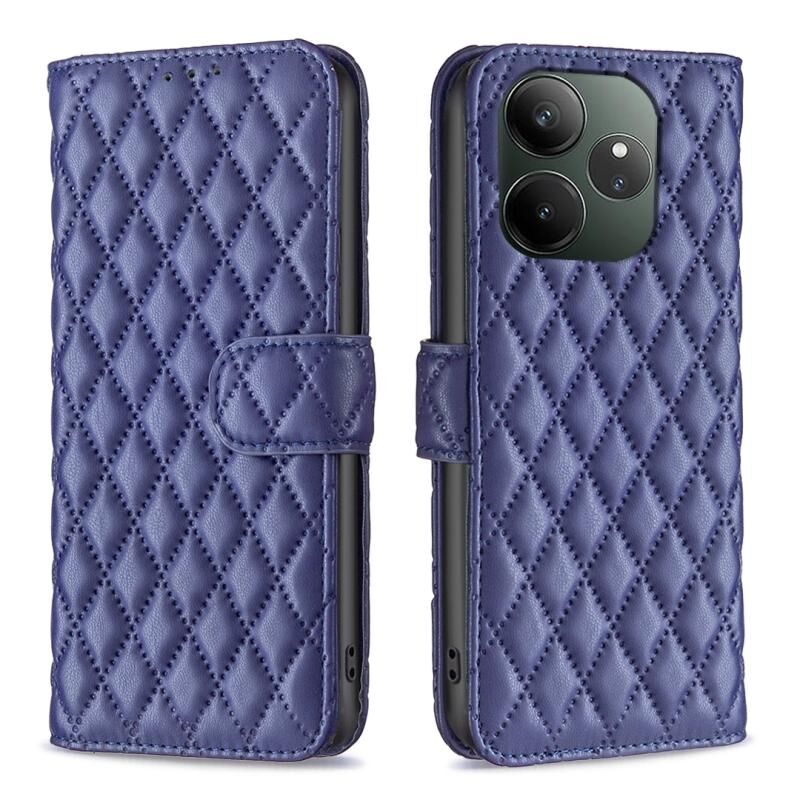 Θήκη τηλεφώνου τύπου πορτοφολιού με δερμάτινη επένδυση και σχέδιο διαμαντέντης πλέγματος για Realme GT 6 / GT 6T (Μπλε)
