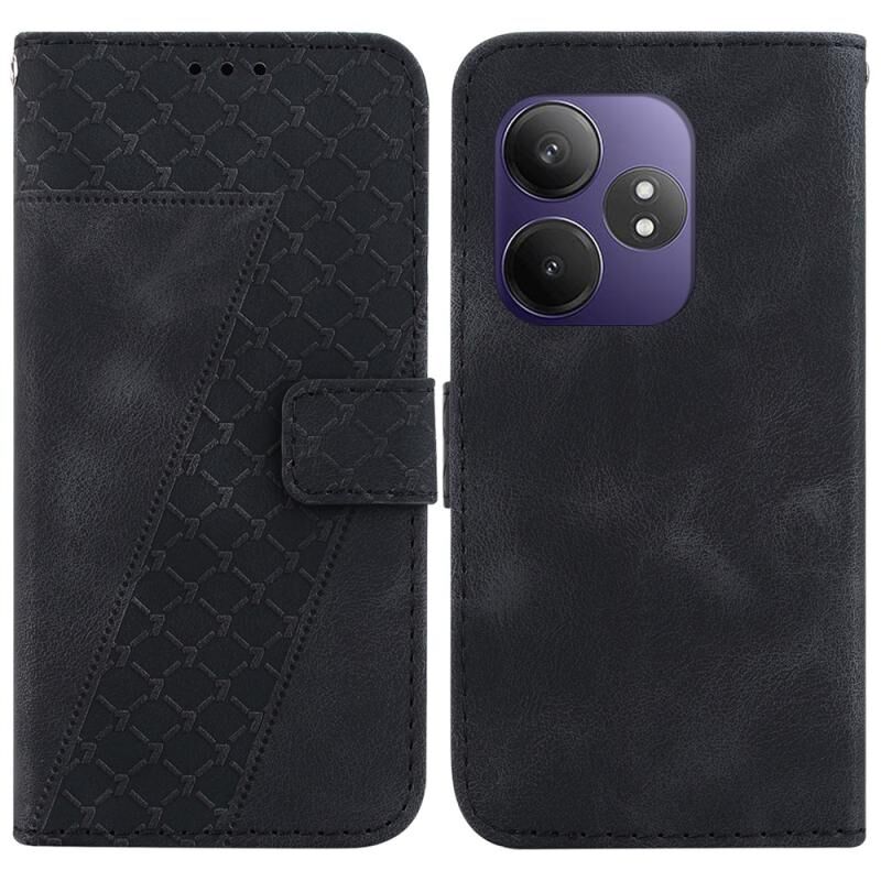 Για Realme GT 6 / GT 6T / GT Neo6 / GT Neo6 SE Επτά-σχήμα ανάγλυφη δερμάτινη θήκη τηλεφώνου (Μαύρο)