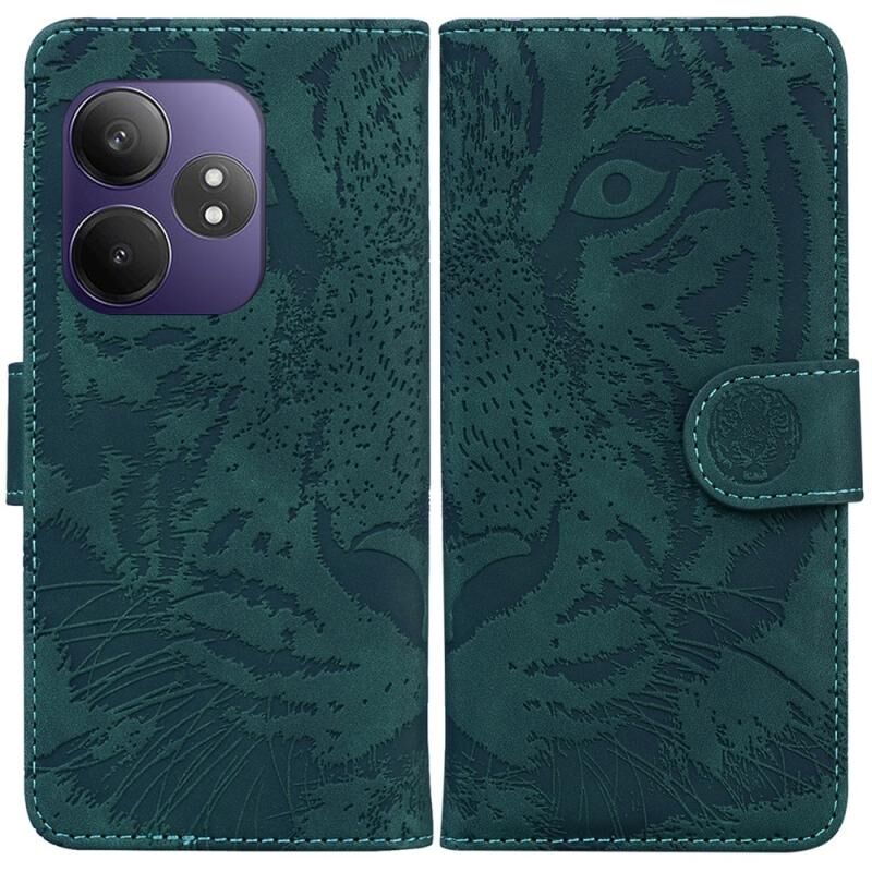 For Realme GT 6 / GT 6T / GT Neo6 Tiger Embossing Pattern Flip Leather Phone Case(Green)