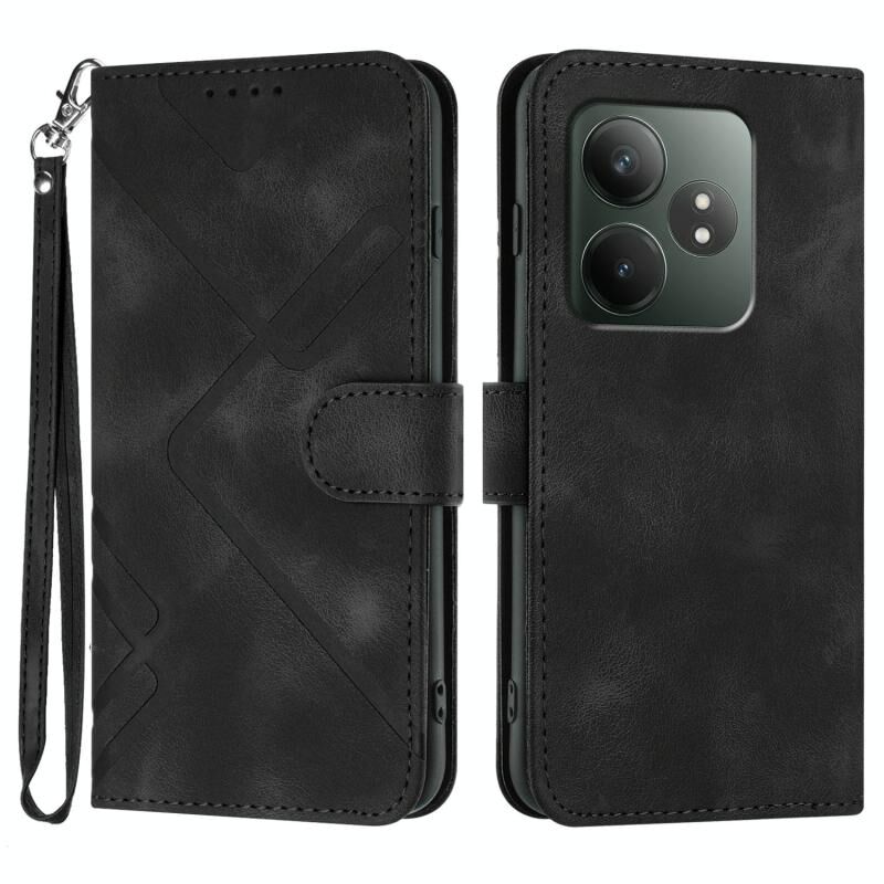 Για Realme GT 6 / GT 6T Γραμμή μοτίβο δέρμα αίσθηση δέρμα τηλέφωνο υπόθεση (μαύρο)