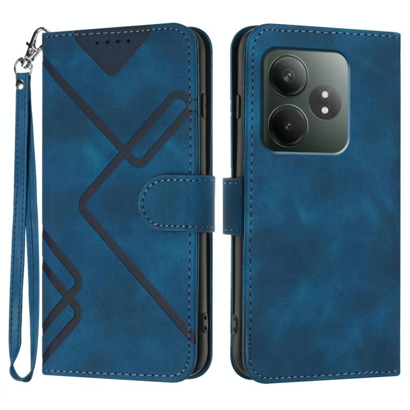 Για Realme GT 6 / GT 6T Γραμμή μοτίβο δέρμα αίσθηση δέρμα τηλέφωνο υπόθεση (Royal Blue)