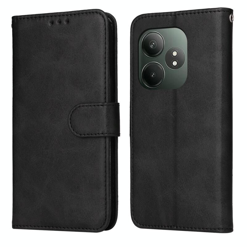Για Realme GT 6 / GT Neo6 SE Κλασική θήκη τηλεφώνου από δέρμα με υφή μοσχαριού (μαύρο)