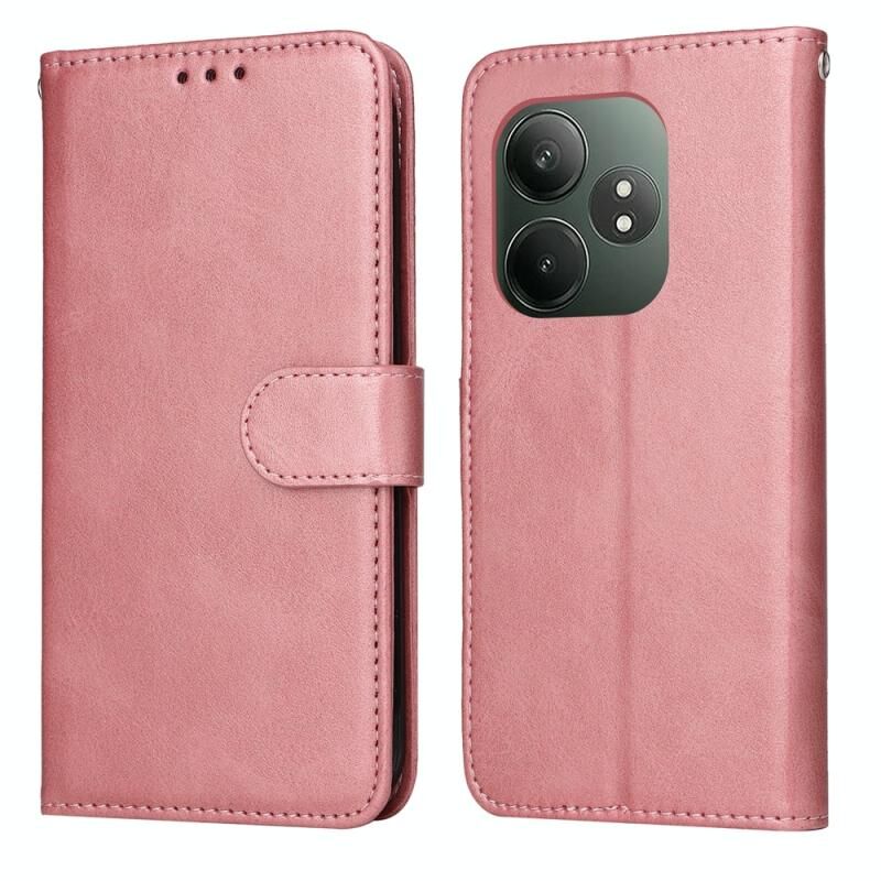 Για Realme GT 6 / GT Neo6 SE Κλασική θήκη τηλεφώνου από δέρμα με υφή μοσχαριού (ροζ χρυσό)