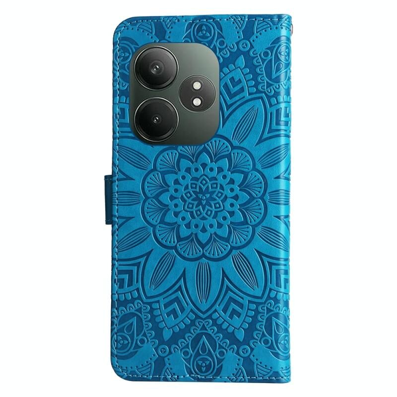 Για Realme GT 6 / GT Neo6 SE ανάγλυφη ηλιοτρόπιο δερμάτινη θήκη τηλεφώνου (μπλε)