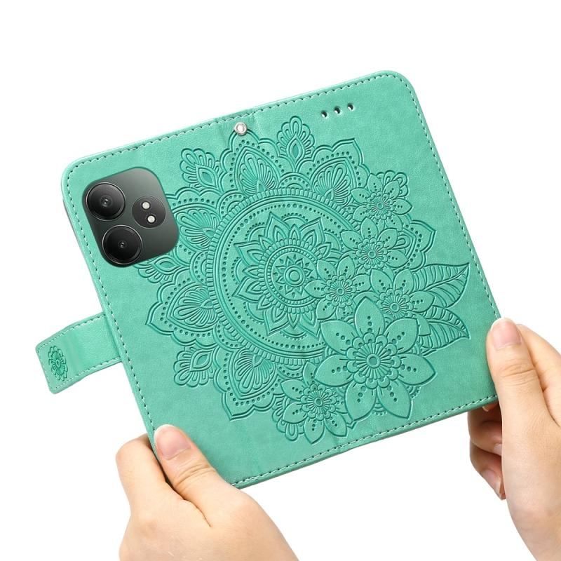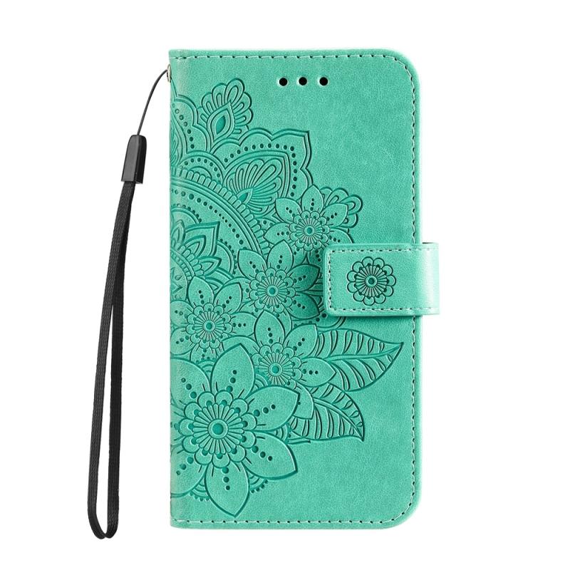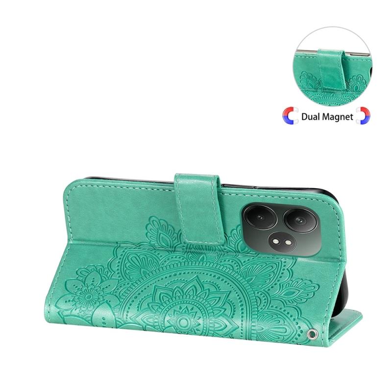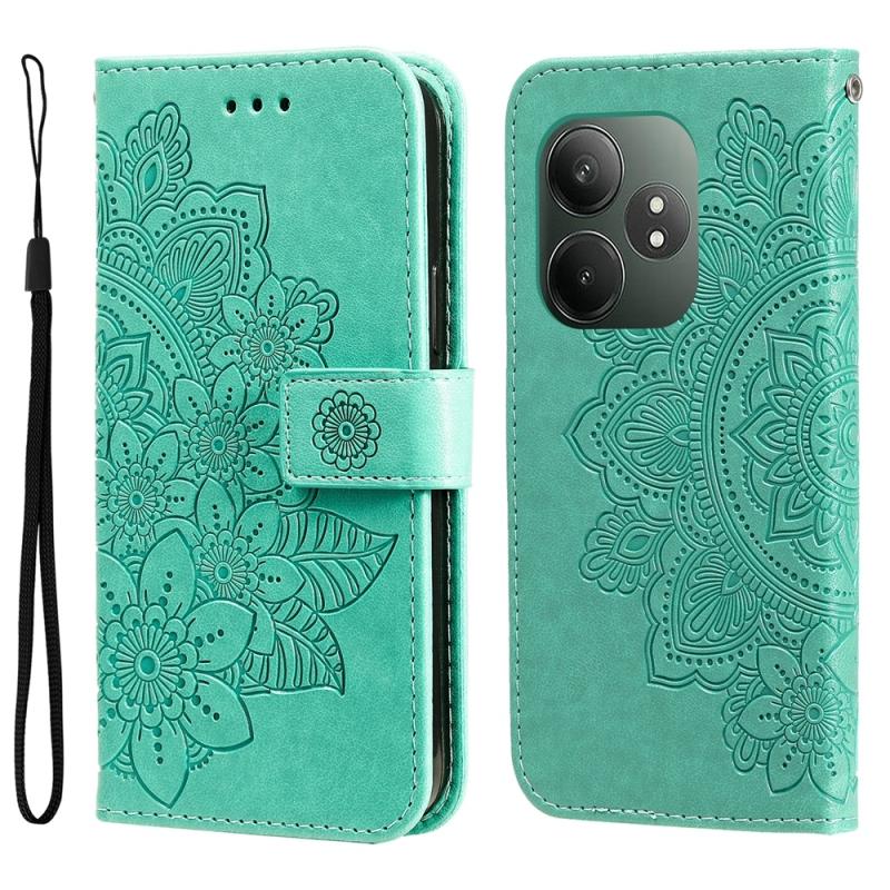 For Realme GT 6 / GT Neo6 SE Seven-petal Flowers Embossing Leather Phone Case(Green)