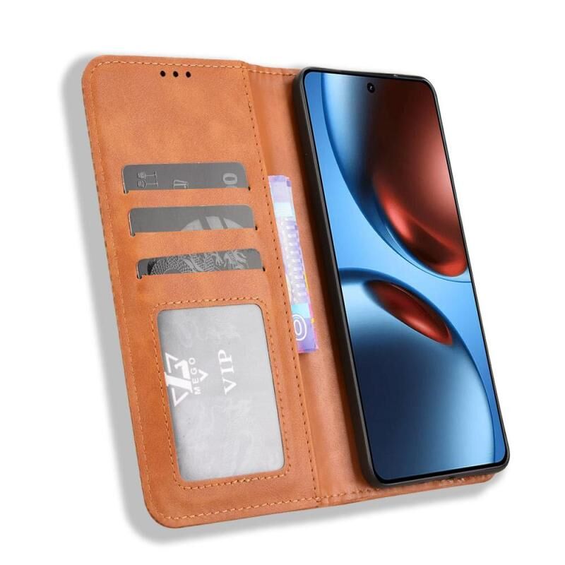 For Realme GT 7 5G Magnetic Buckle Retro Texture Leather Phone Case(Brown)