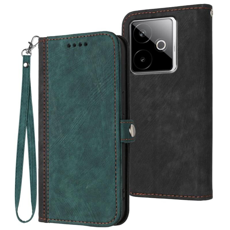 For Realme GT 7 India Side Buckle Double Fold Hand Strap Leather Phone Case(Dark Green)