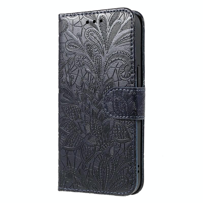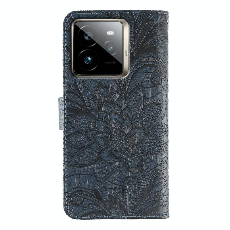 Θήκη Δερμάτινη Flip με Λουλούδια και Δαντέλα για Realme GT 7 Pro (Σκούρο Μπλε)