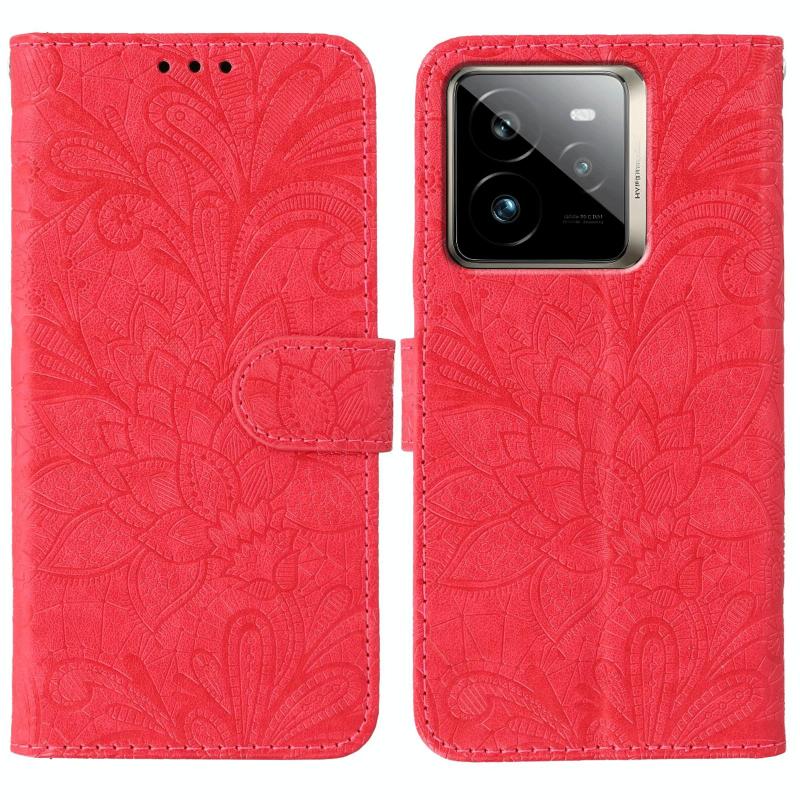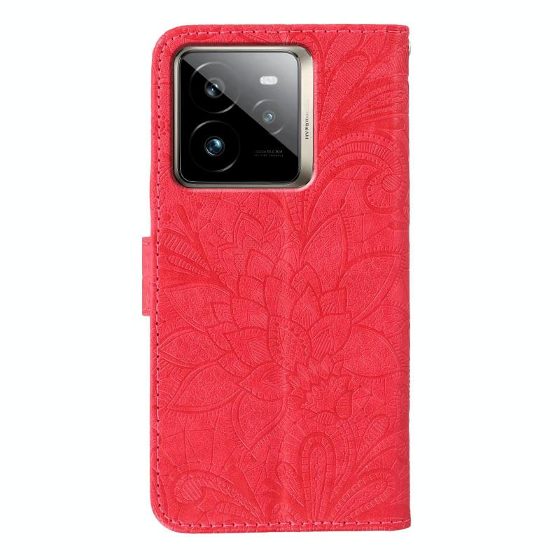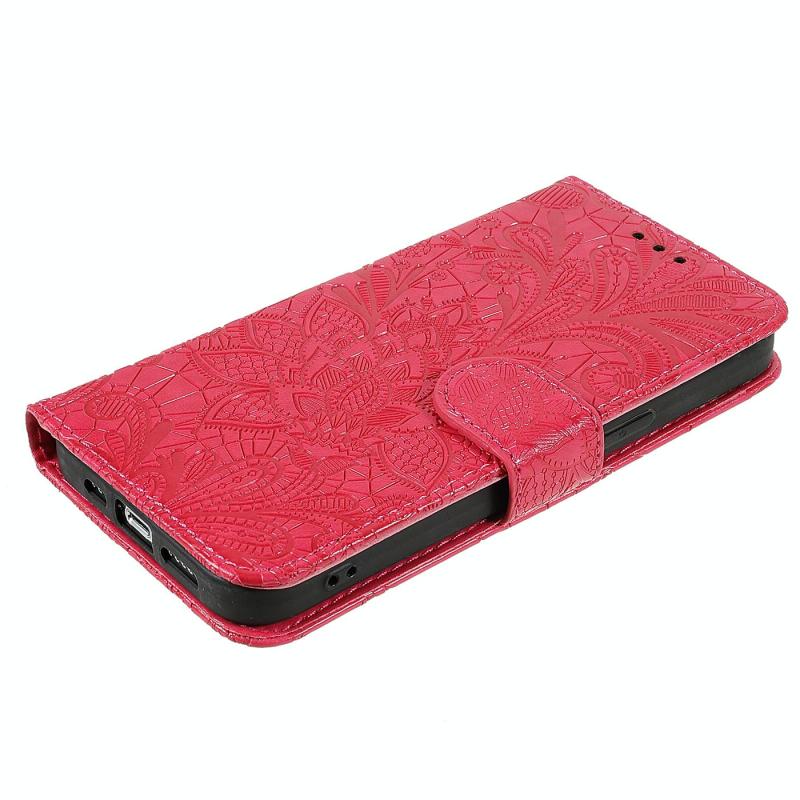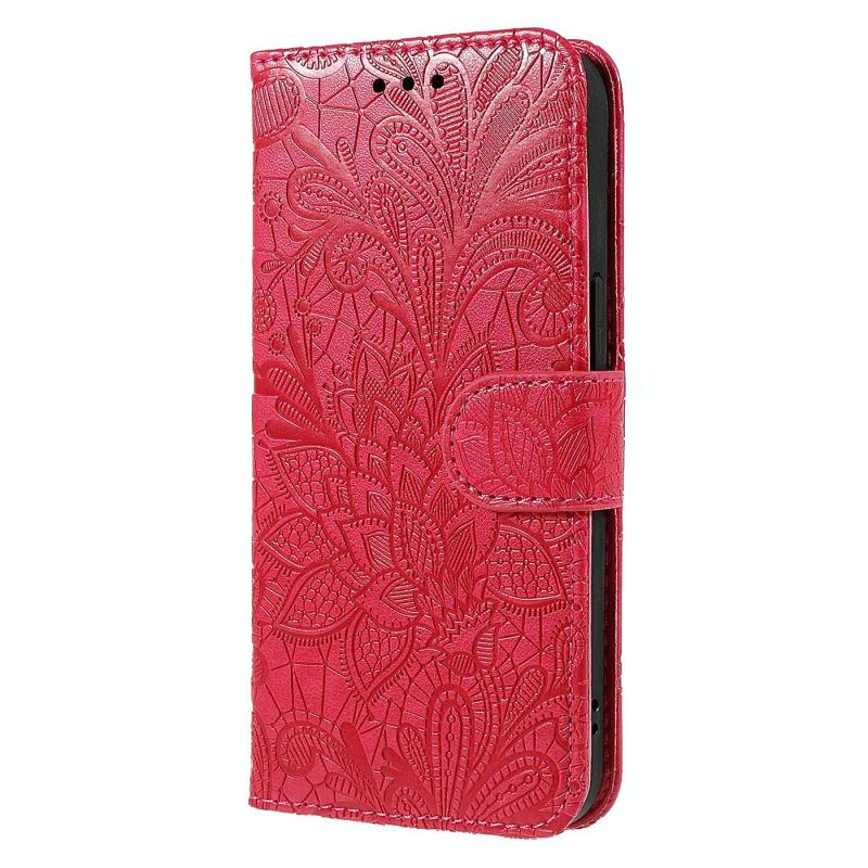 Θήκη Δερμάτινη Flip με Λουλούδια και Δαντέλα για Realme GT 7 Pro (Κόκκινο)