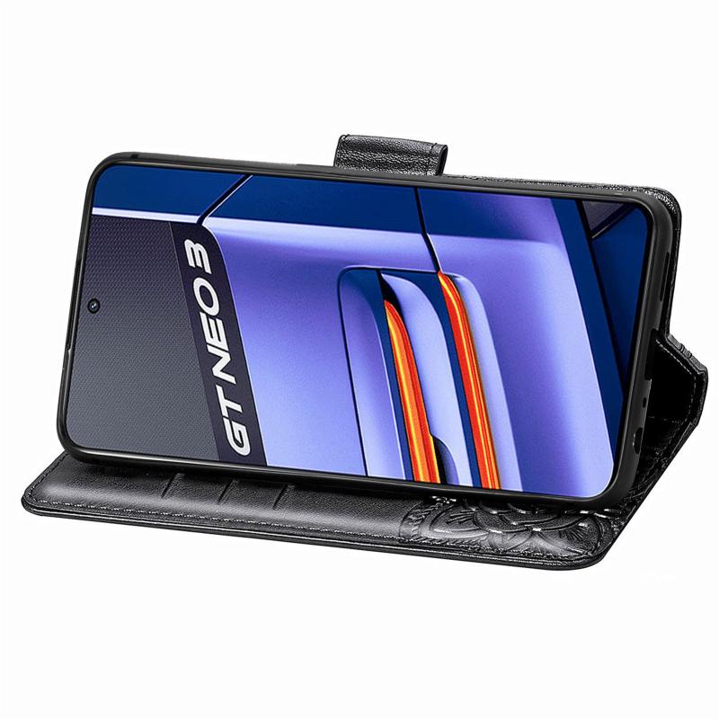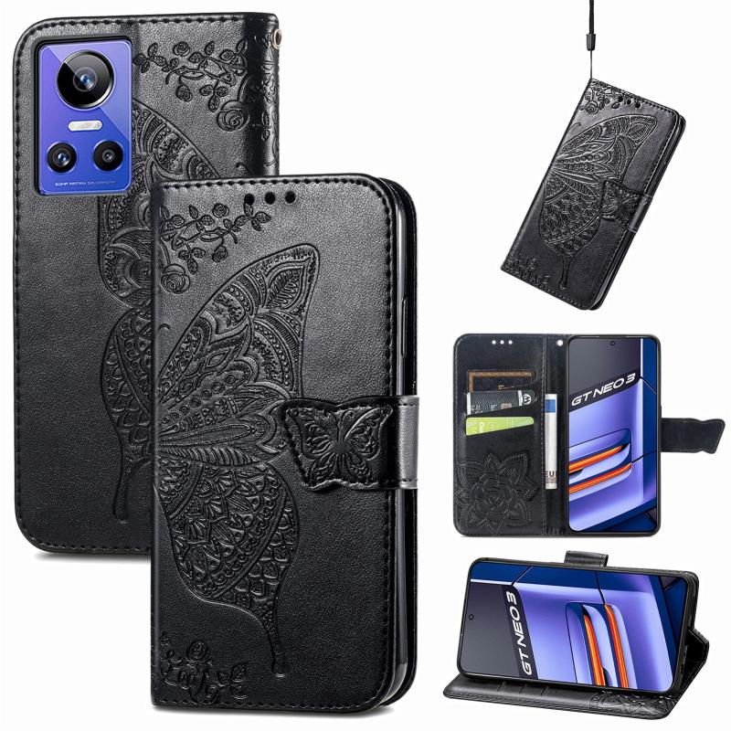 For Realme GT Neo 3 Butterfly Love Flower Embossed Flip Leather Phone Case(Black)