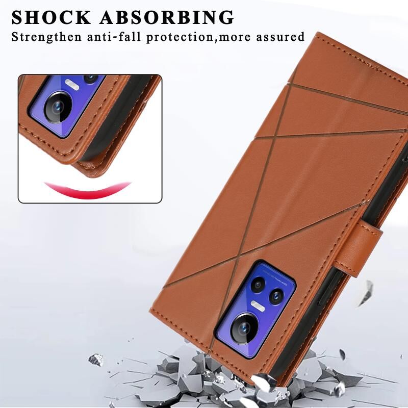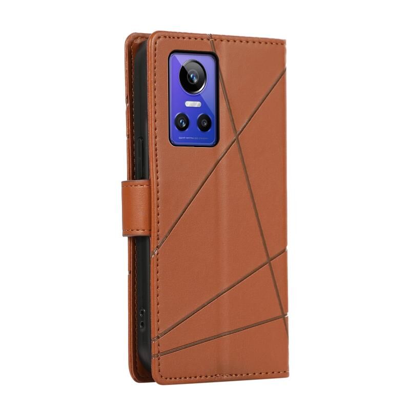 For Realme GT Neo 3 PU Genuine Leather Texture Embossed Line Phone Case(Brown)