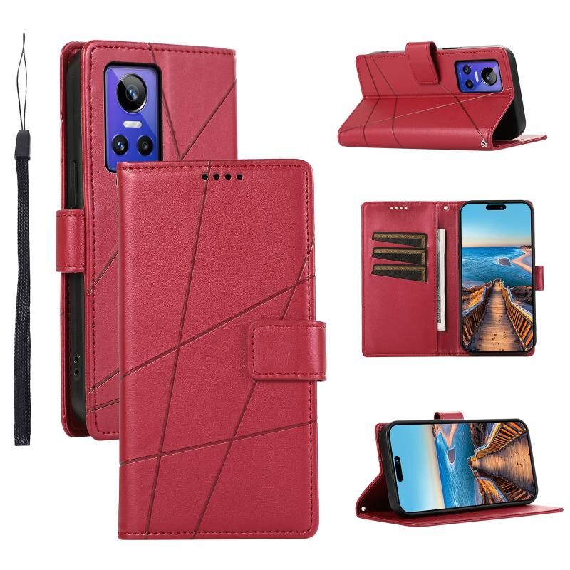 For Realme GT Neo 3 PU Genuine Leather Texture Embossed Line Phone Case(Red)