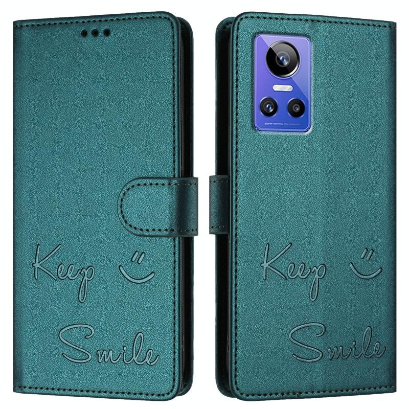 Για Realme GT Neo 3 Χαμόγελο ανάγλυφο RFID δερμάτινη θήκη τηλεφώνου (Πράσινο παγώνι)