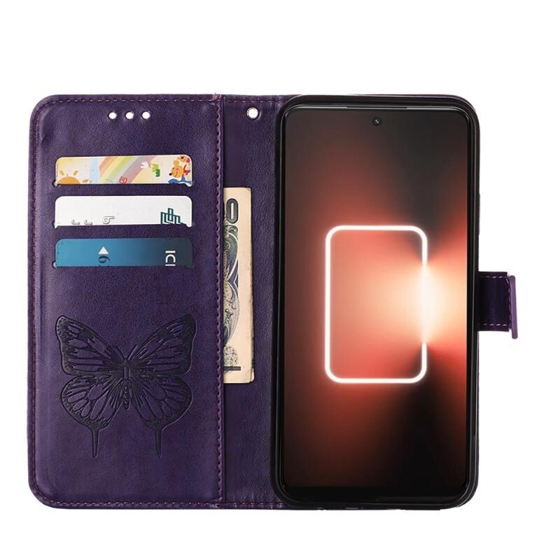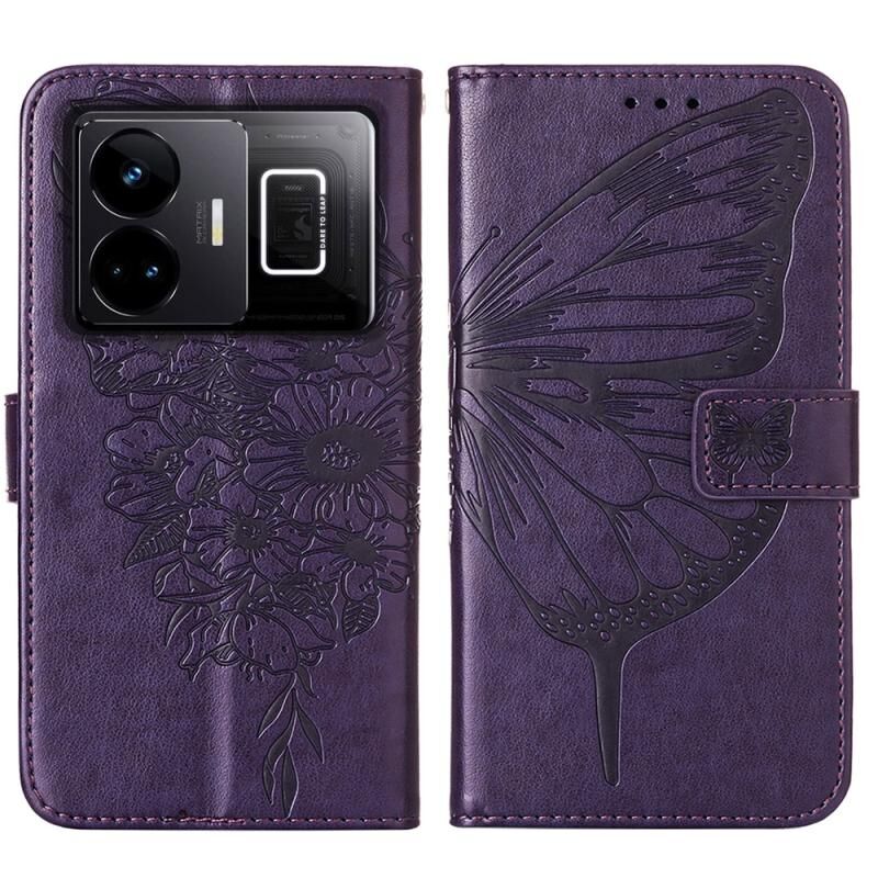 Θήκη τηλεφώνου από δέρμα με ανάγλυφο σχέδιο πεταλούδας για Realme GT Neo 5 5G / GT3 (Σκούρο Μωβ)