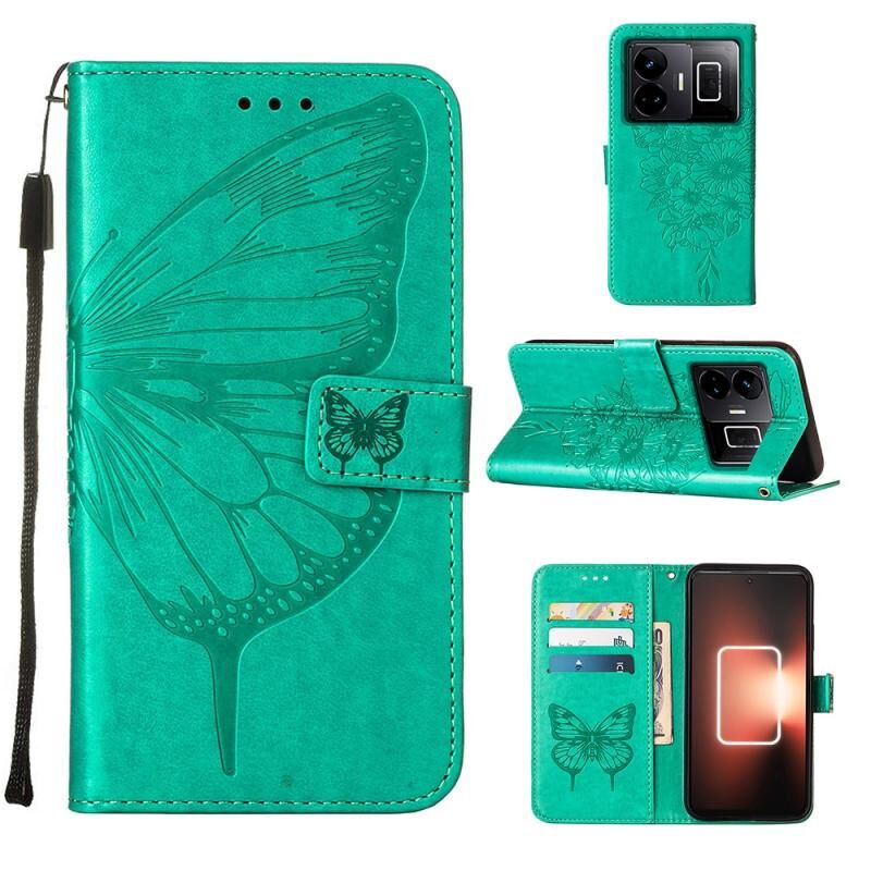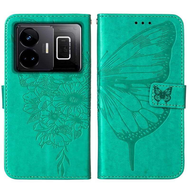 Θήκη τηλεφώνου από δέρμα με ανάγλυφο σχέδιο πεταλούδας για Realme GT Neo 5 5G / GT3 (Σκούρο Μωβ)