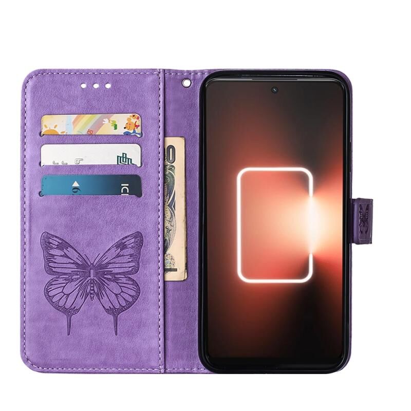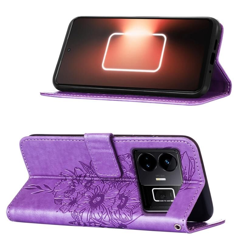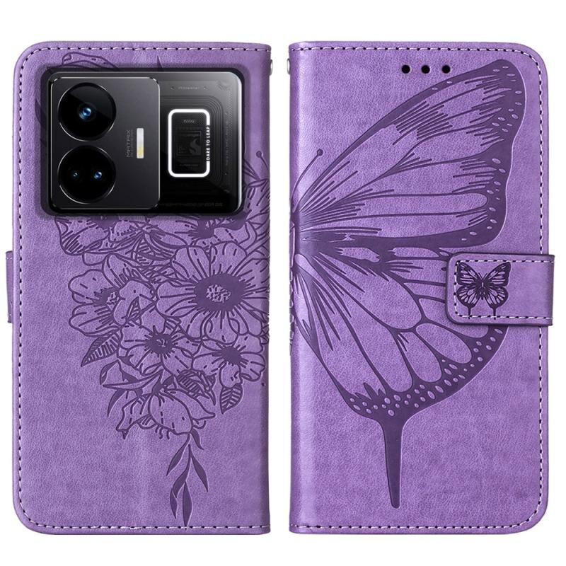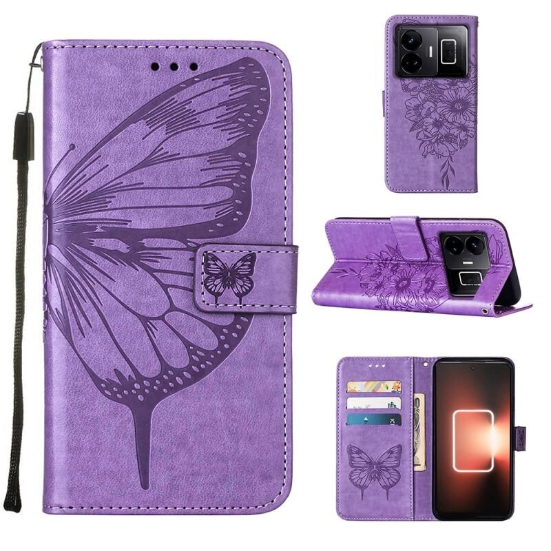 Θήκη τηλεφώνου από δέρμα με ανάγλυφο σχέδιο πεταλούδας για Realme GT Neo 5 5G / GT3 (Σκούρο Μωβ)