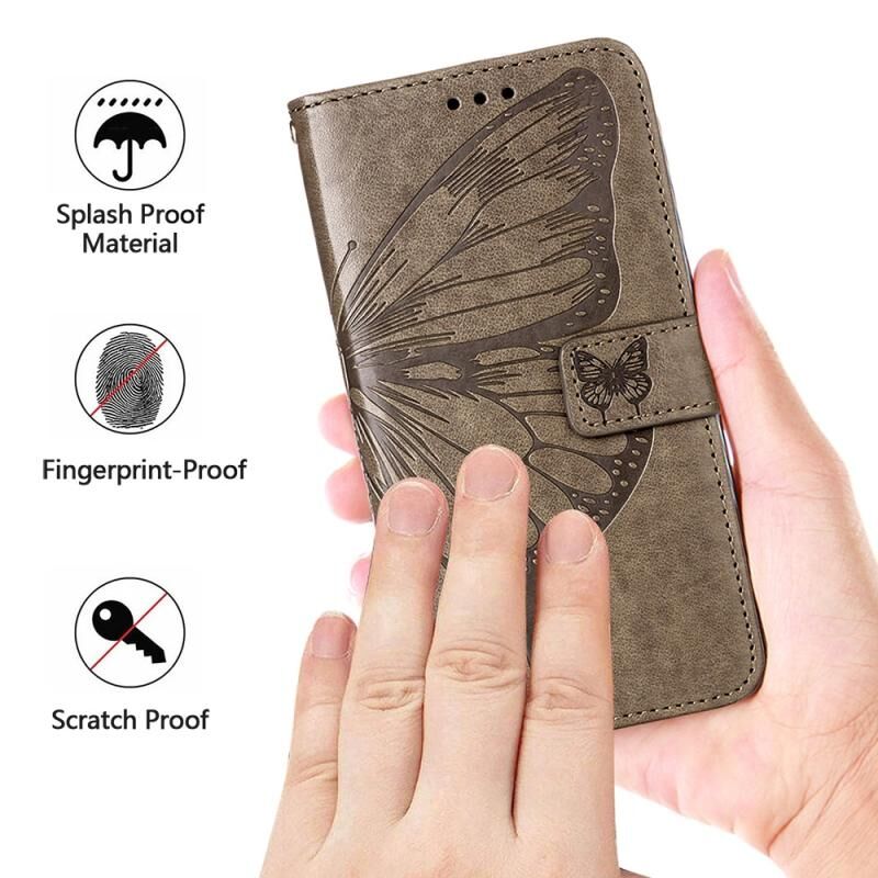 Θήκη τηλεφώνου από δέρμα με ανάγλυφο σχέδιο πεταλούδας για Realme GT Neo 5 5G / GT3 (Σκούρο Μωβ)