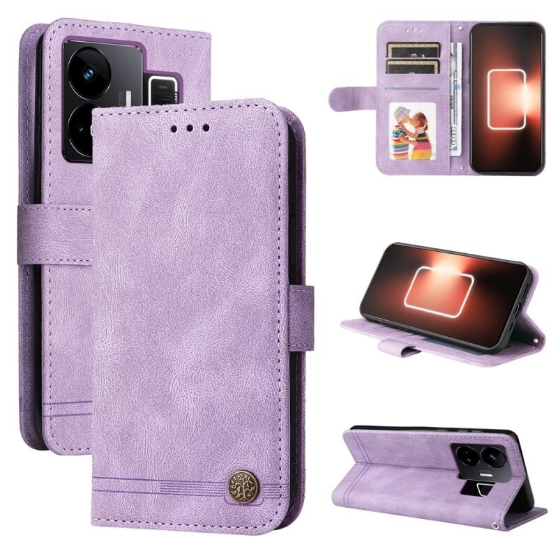 For Realme GT Neo 5 5G / GT3 Skin Feel Life Tree Metal Button Leather Phone Case(Purple)