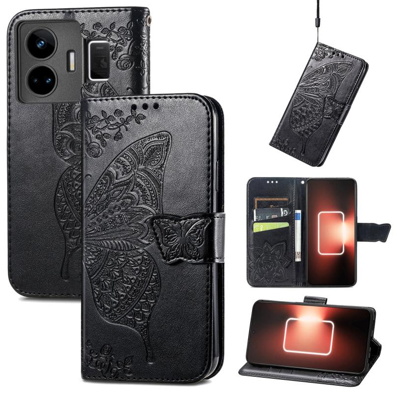 For Realme GT Neo 5 Butterfly Love Flower Embossed Leather Phone Case(Black)