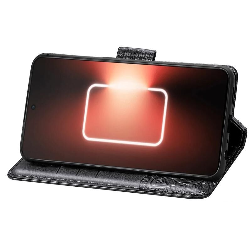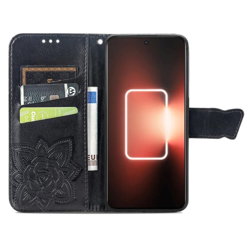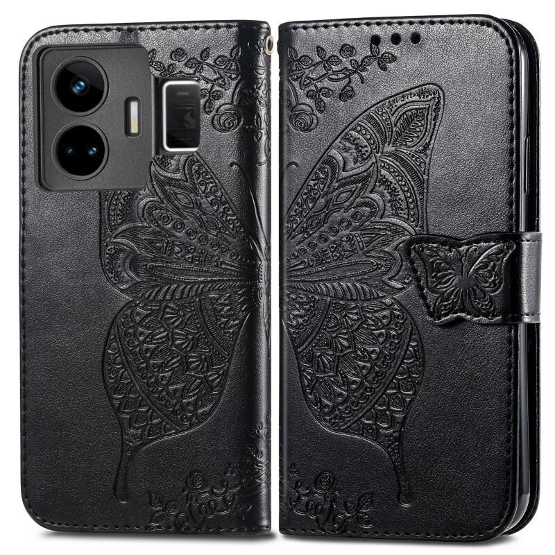 Θήκη τηλεφώνου από δέρμα με ανάγλυφο σχέδιο πεταλούδας και λουλουδιών για Realme GT Neo 5 (Μαύρο)