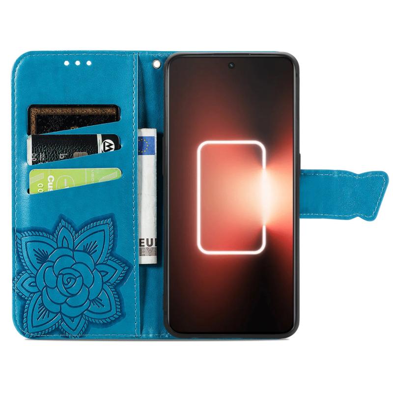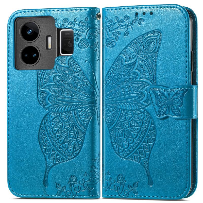 For Realme GT Neo 5 Butterfly Love Flower Embossed Leather Phone Case(Blue)