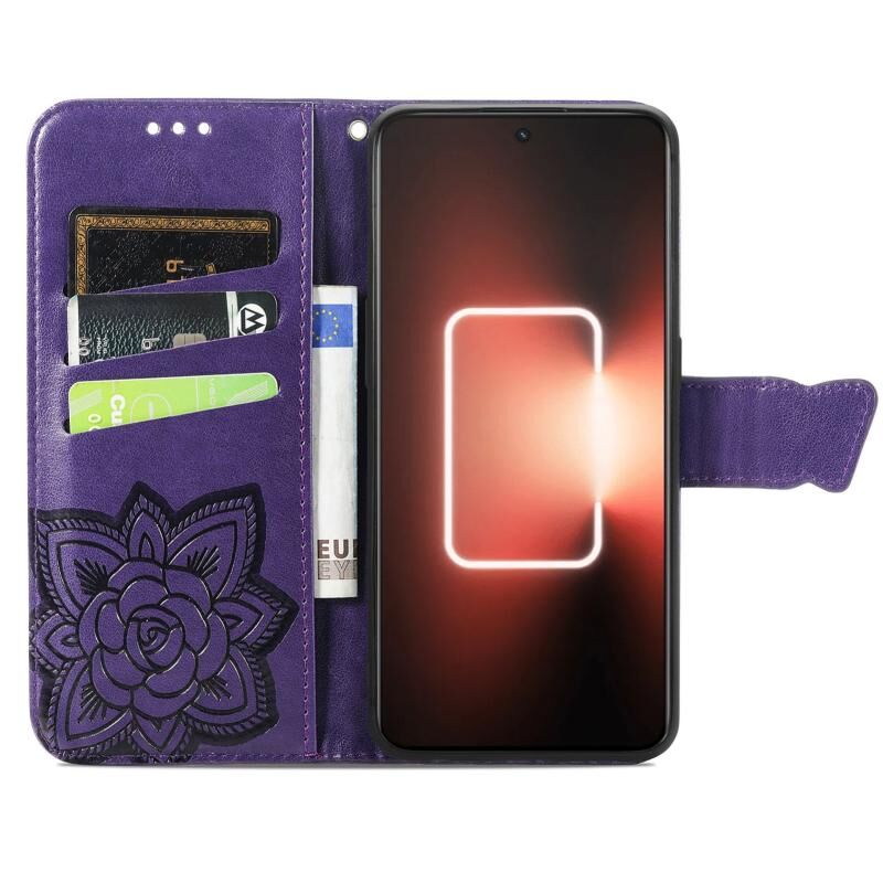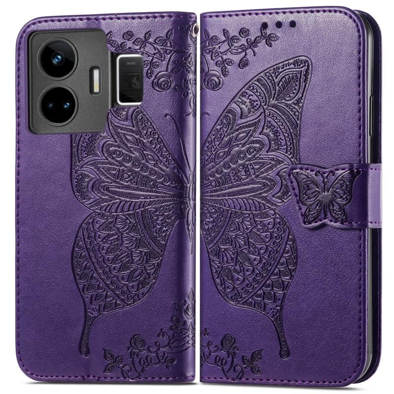Θήκη τηλεφώνου από δέρμα με ανάγλυφο σχέδιο πεταλούδας και λουλουδιών για Realme GT Neo 5 (Μαύρο)