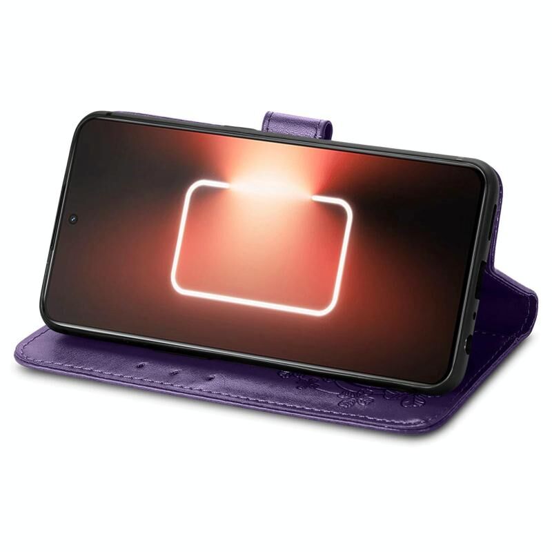 Για Realme GT Neo 5 τετράφυλλο κούμπωμα ανάγλυφο αγκράφα δερμάτινη θήκη τηλεφώνου (μωβ)
