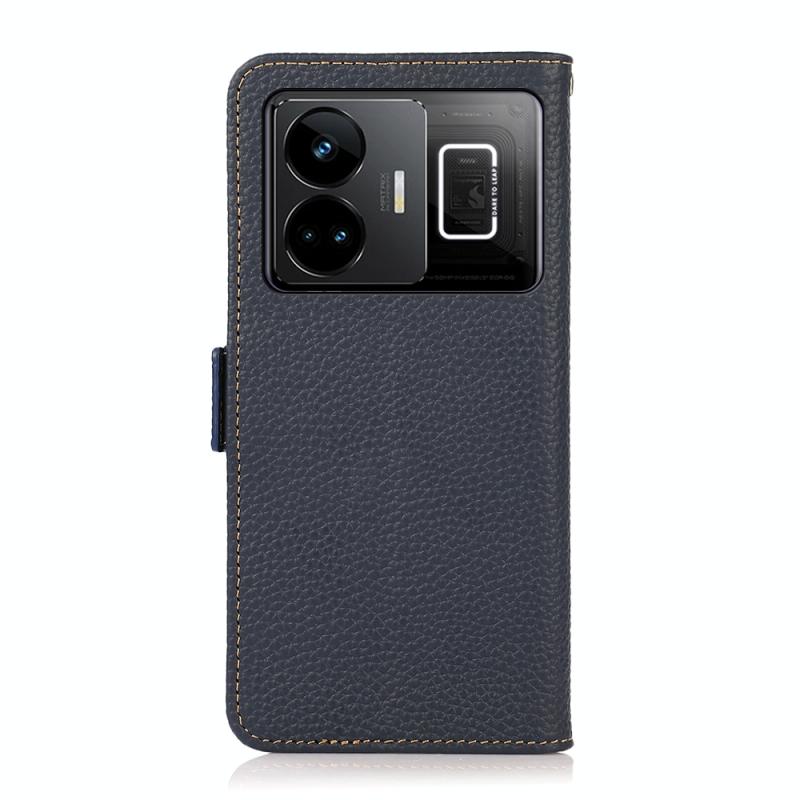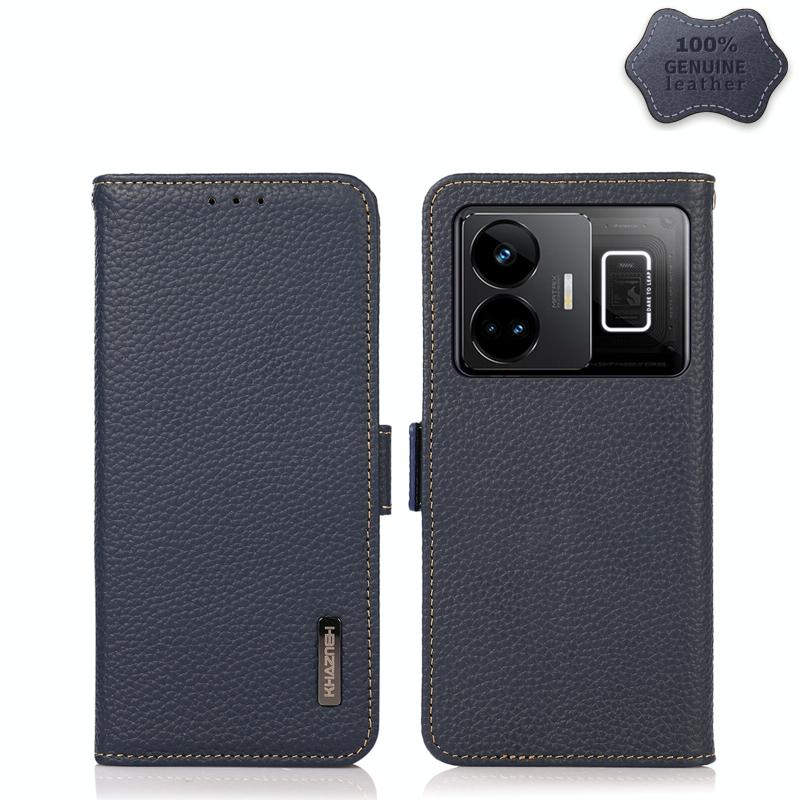 Θήκη τηλεφώνου Realme GT Neo 5 KHAZNEH με μαγνητικό κλείσιμο, γνήσιο δέρμα λυτσί, RFID (Μπλε)