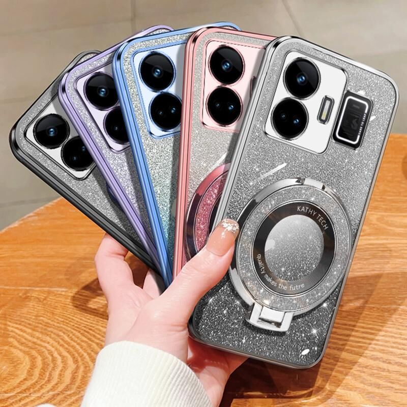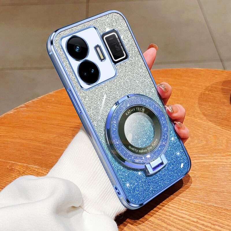 For Realme GT Neo 5 Plated Gradient Glitter Round Holder TPU Phone Case(Sierra Blue)