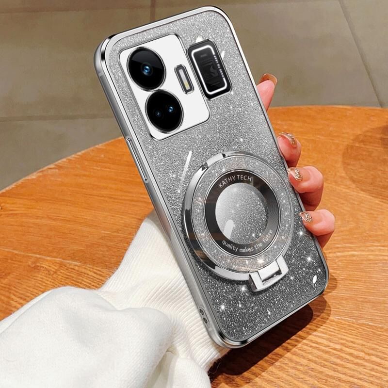 For Realme GT Neo 5 Plated Gradient Glitter Round Holder TPU Phone Case(Silver)
