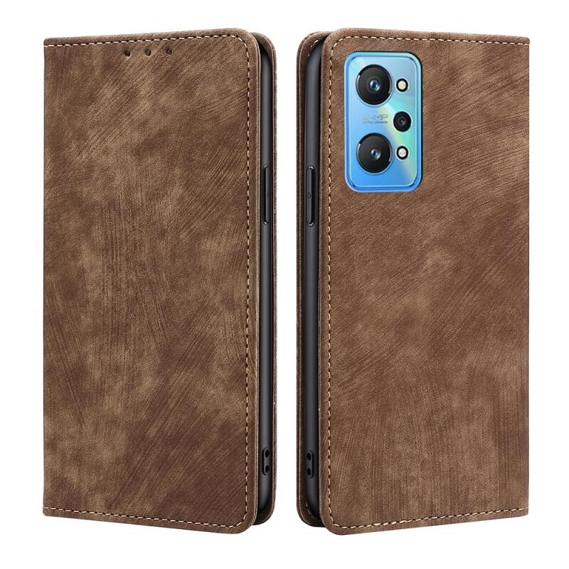 Για Realme GT Neo2 5G RFID Anti-theft Brush Μαγνητική θήκη τηλεφώνου από δέρμα (καφέ)