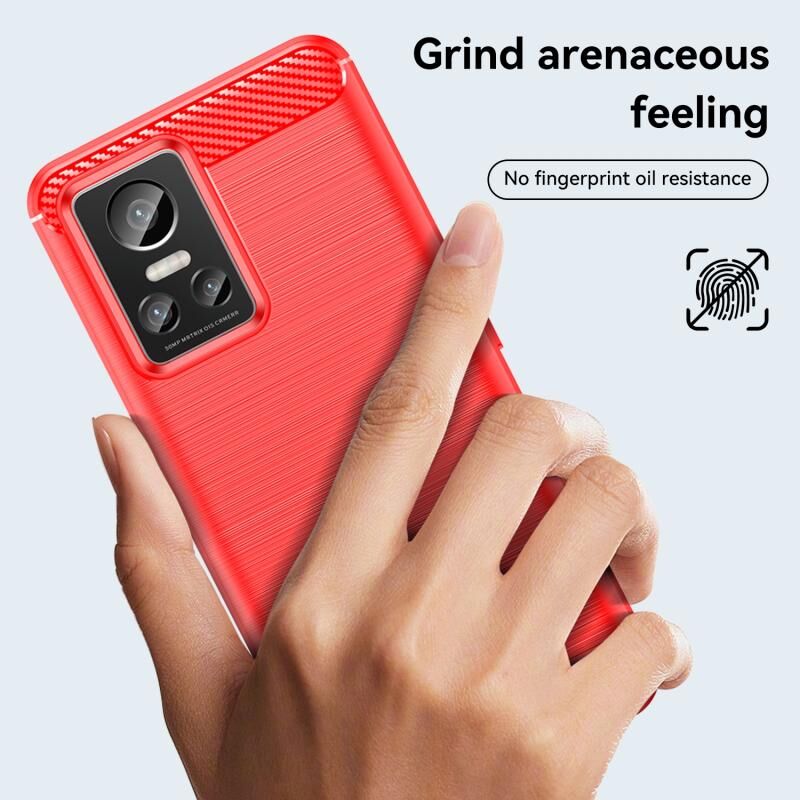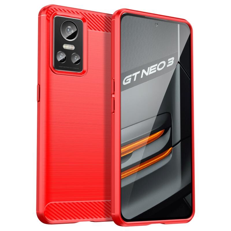 Για Realme GT Neo3 βουρτσισμένη υφή Carbon Fiber TPU τηλέφωνο υπόθεση (κόκκινο)