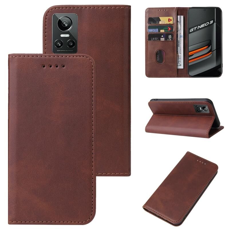 For Realme GT Neo3 Magnetic Closure Leather Phone Case(Brown)