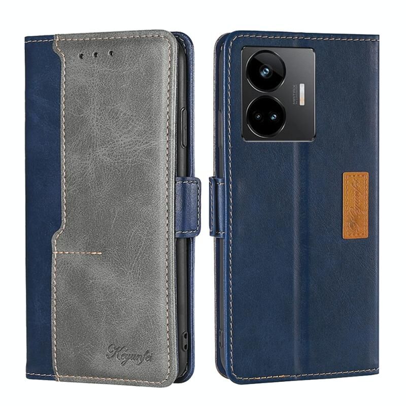 Για Realme GT Neo5 αντίθεση χρώμα πλευρά πόρπη δερμάτινη θήκη τηλεφώνου υπόθεση (μπλε + γκρι)
