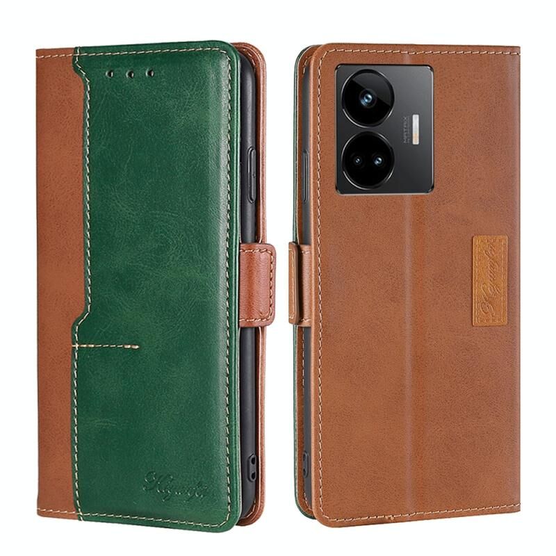 Για Realme GT Neo5 Αντίθετο χρώμα πλευρά πόρπη δερμάτινη θήκη τηλεφώνου (ανοιχτό καφέ + πράσινο)