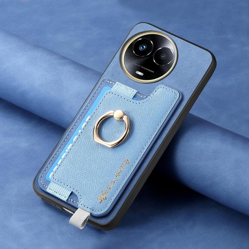 For Realme GT Neo5 SE 5G Retro Magsafe Cross Leather Ring Holder Card Bag Phone Case(Blue)