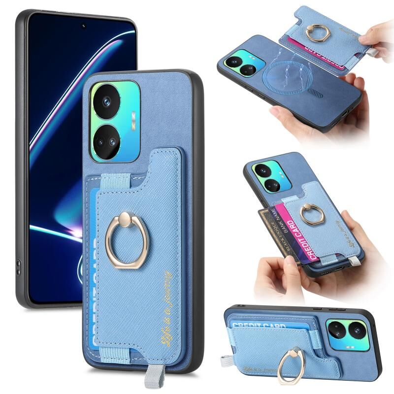 Θήκη τηλεφώνου για Realme GT Neo5 SE 5G Retro Magsafe Cross Δερμάτινη με Δαχτυλίδι και Θήκη Κάρτας (Κίτρινο)