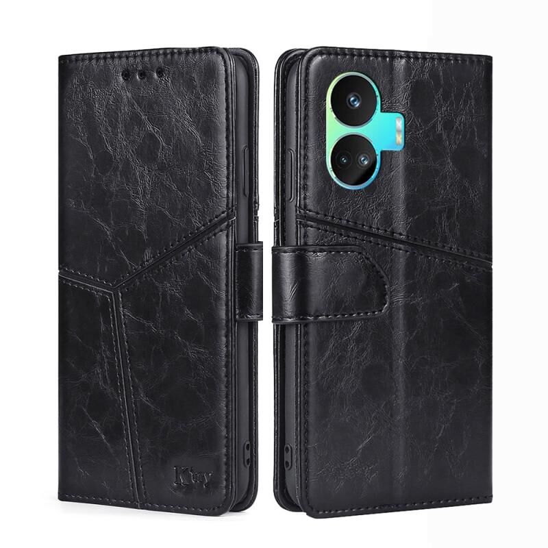 Για Realme GT Neo5 SE γεωμετρική ραφή δερμάτινη θήκη τηλεφώνου (μαύρο)