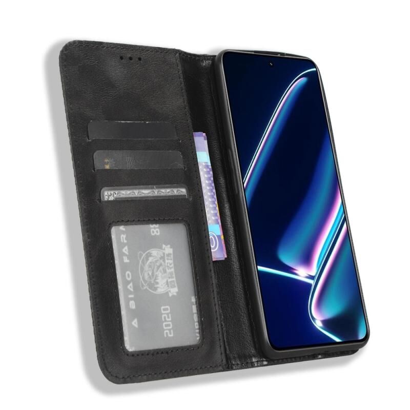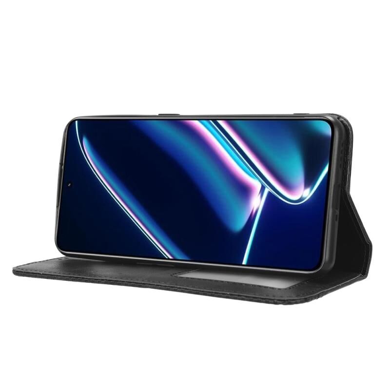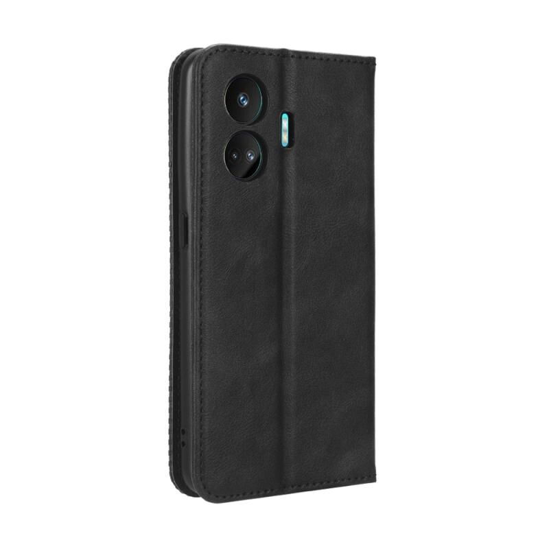 For Realme GT Neo5 SE Magnetic Buckle Retro Texture Leather Phone Case(Black)