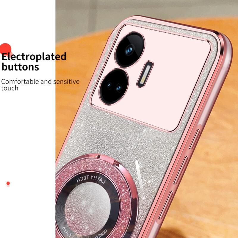For Realme GT Neo5 SE Plated Gradient Glitter Round Holder TPU Phone Case(Pink)