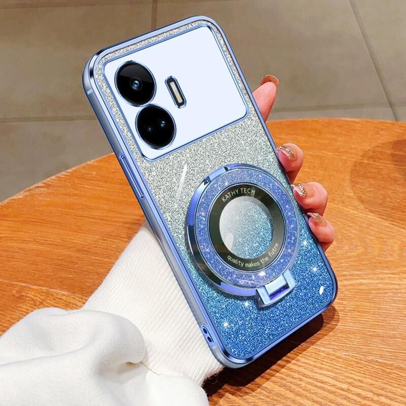 For Realme GT Neo5 SE Plated Gradient Glitter Round Holder TPU Phone Case(Sierra Blue)